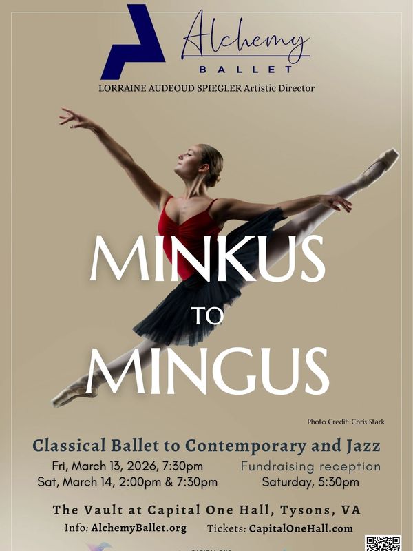 Artists in Motion dba Alchemy Ballet presents Minkus to Mingus: Classical to Contemporary Ballet and Jazz. This dynamic, genre-spanning performance offers a compelling journey across musical traditions and dance styles, weaving together classical ballet, neoclassical works, and contemporary choreography set to music ranging from 19th-century ballet composer Ludwig Minkus to jazz innovator Charles Mingus, alongside legendary voices of soul and popular music.